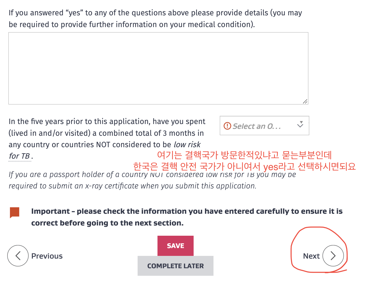 한국은 결핵 국가 안전국가가 아니므로 저는 yes를 했어요!
