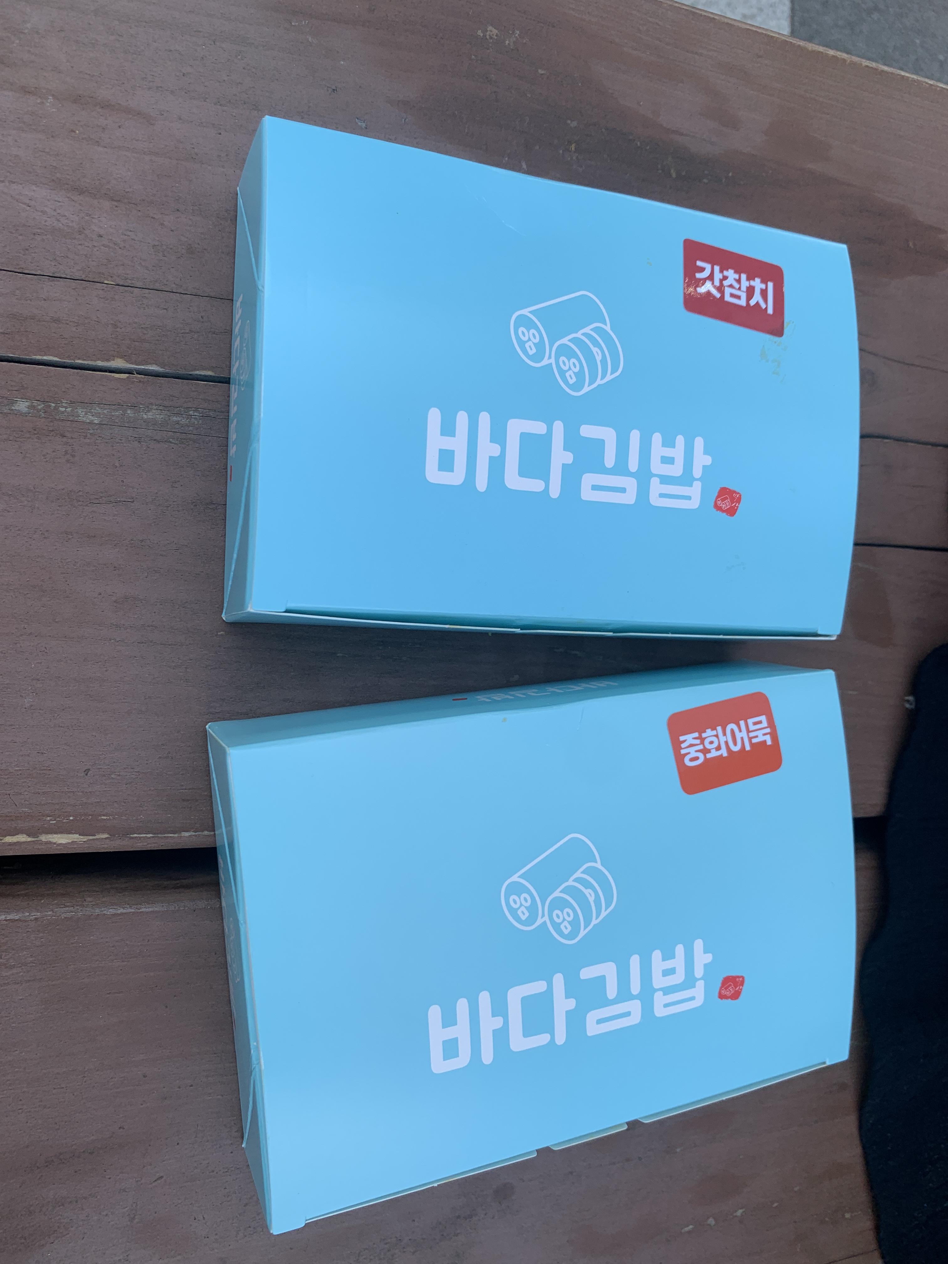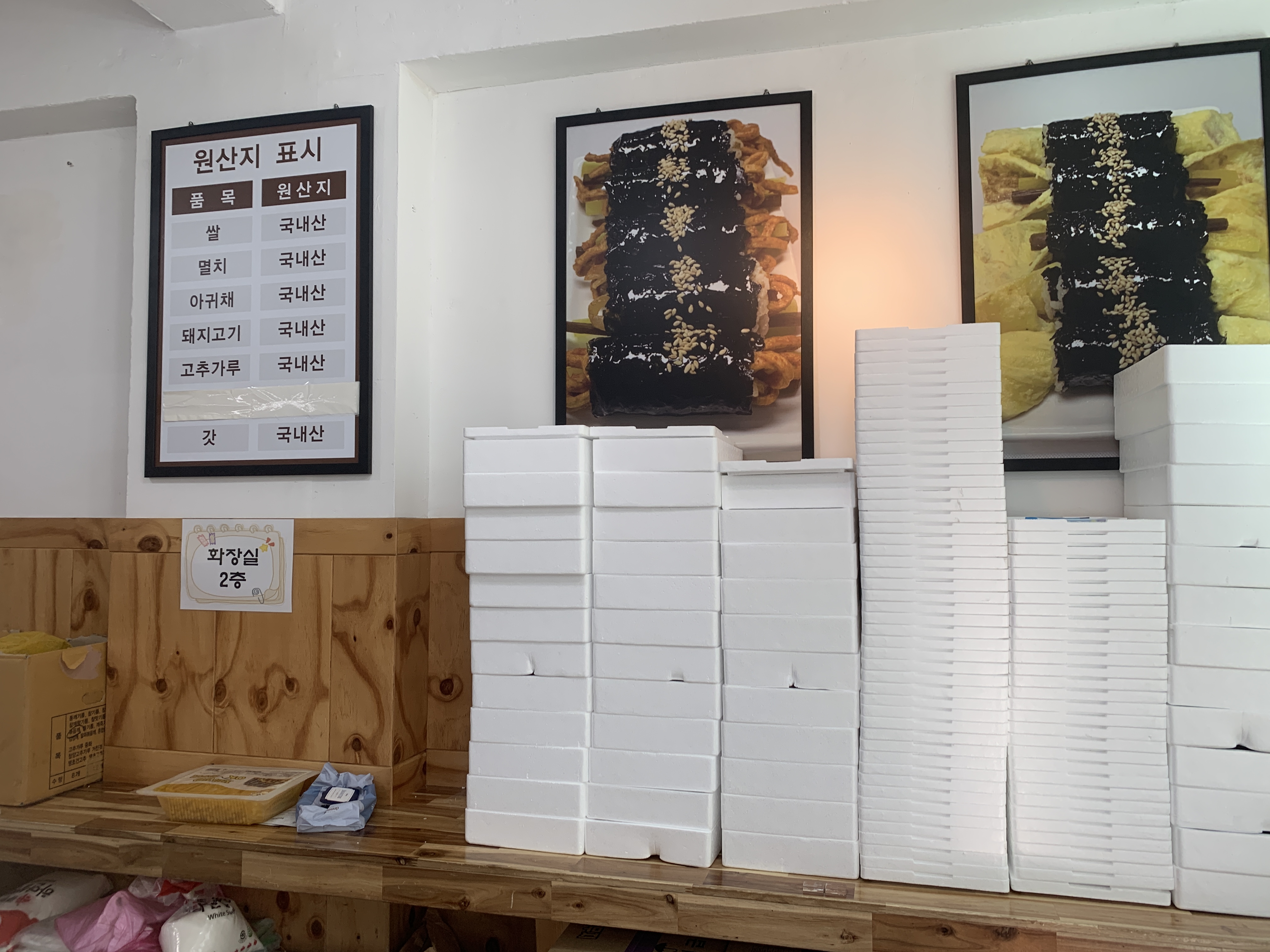 이 김밥은 꼬마김밥이라 5개씩 조그마하게 박스로 팔아요