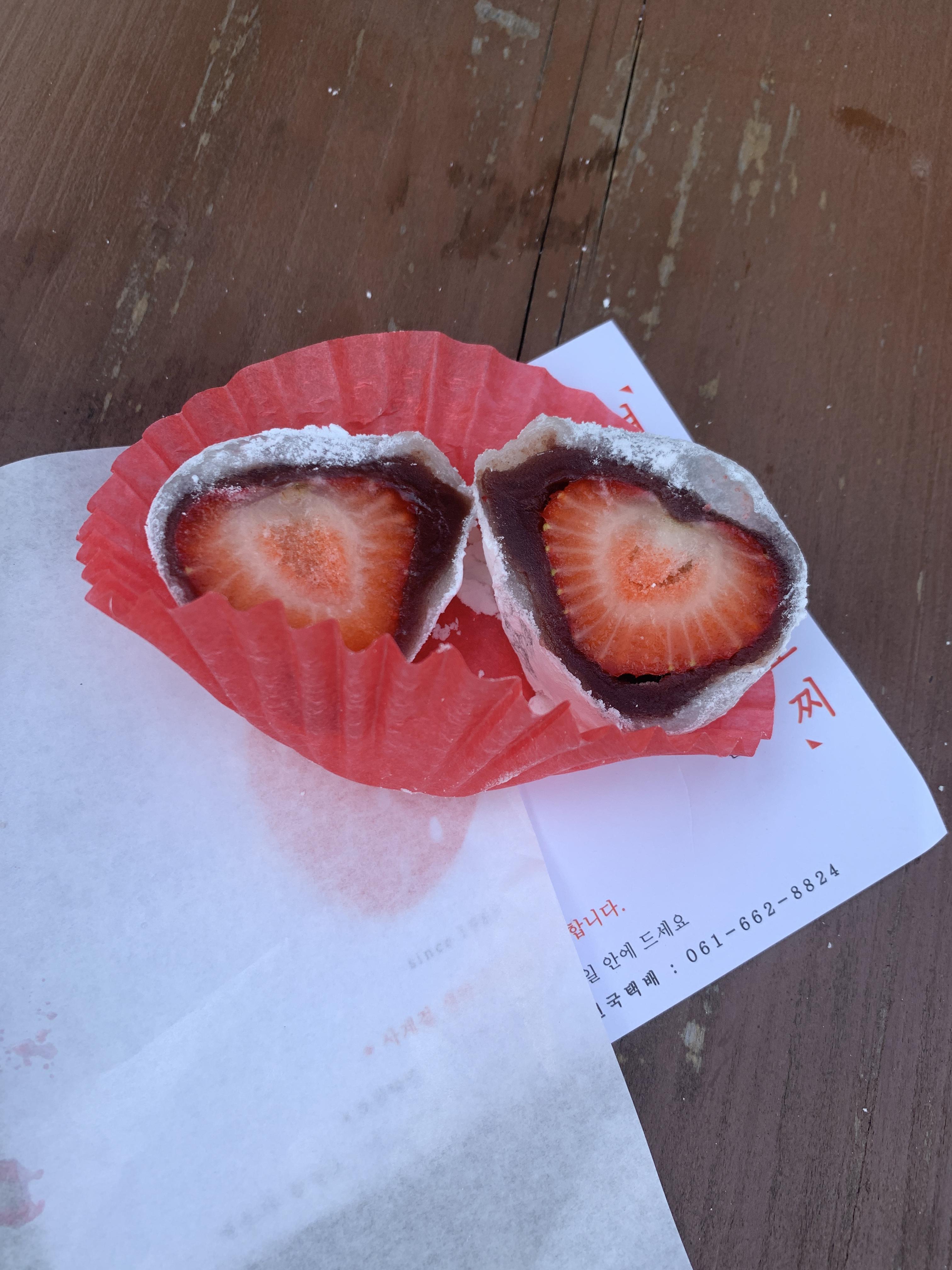 김밥을 구매 후 여수딸기모찌에 들렀답니다