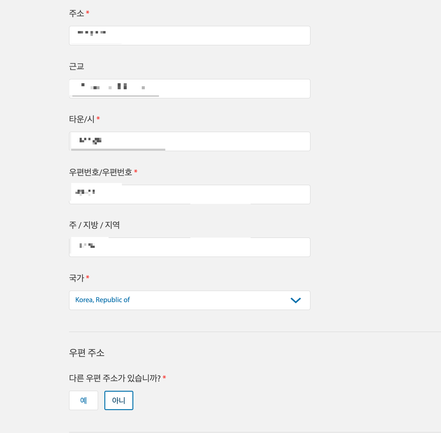 한국 주소로 해줬어요!!