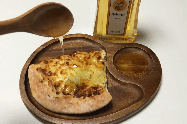 이렇게 짠맛이 강한 치즈가 많이들어가 피자에 꿀뿌리면
